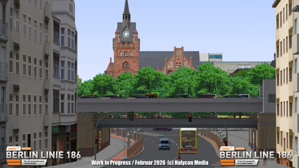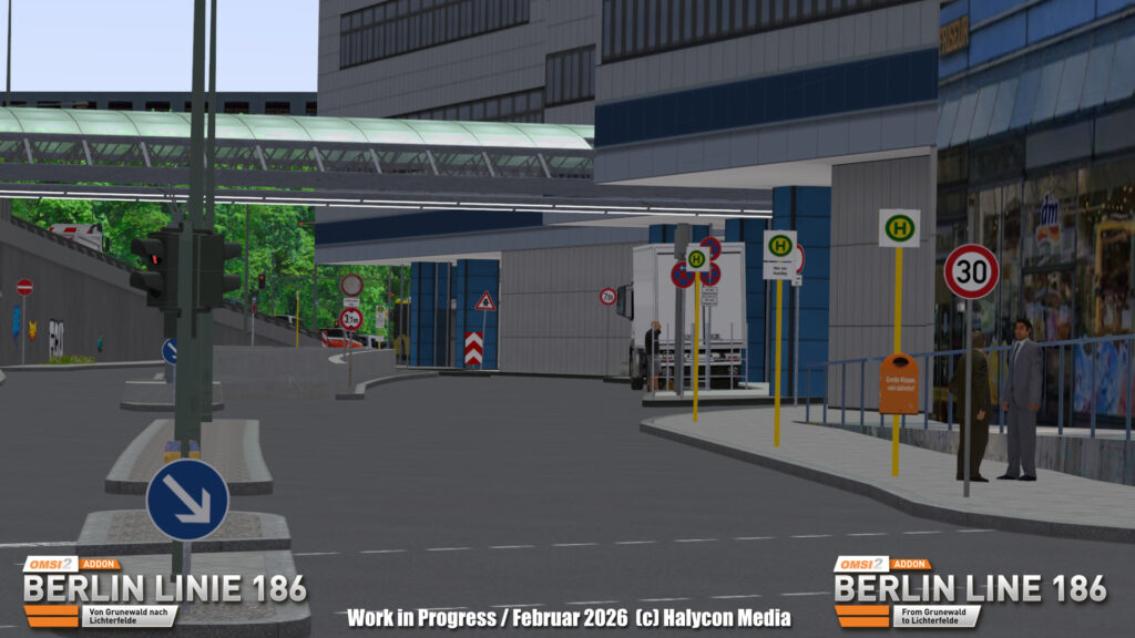 Die Arbeiten an den Objekten für das kommende OMSI‑AddOn Berlin Linie 186 nähern sich ihrem Abschluss, während der Beta‑Test bereits auf Hochtouren läuft.